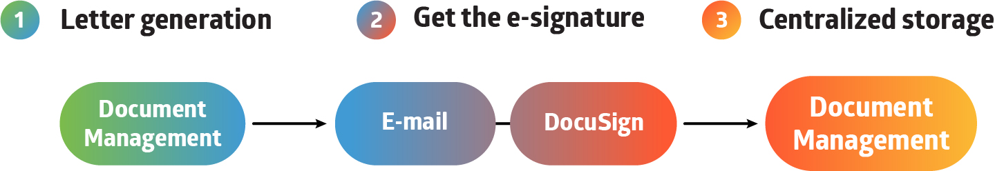 Turn signing documents into smooth, automated workflows with DocuSign for Microsoft Dynamics 365 (Human Resources). By integrating your DocuSign credentials into the HR Document Management app, you incorporate e-signatures into your existing document signature and approval workflows, giving your employees a fast, easy, secure and compliant way to sign documents online. Simply enable DocuSign and enter your existing DocuSign credentials into our document management system to use the feature.